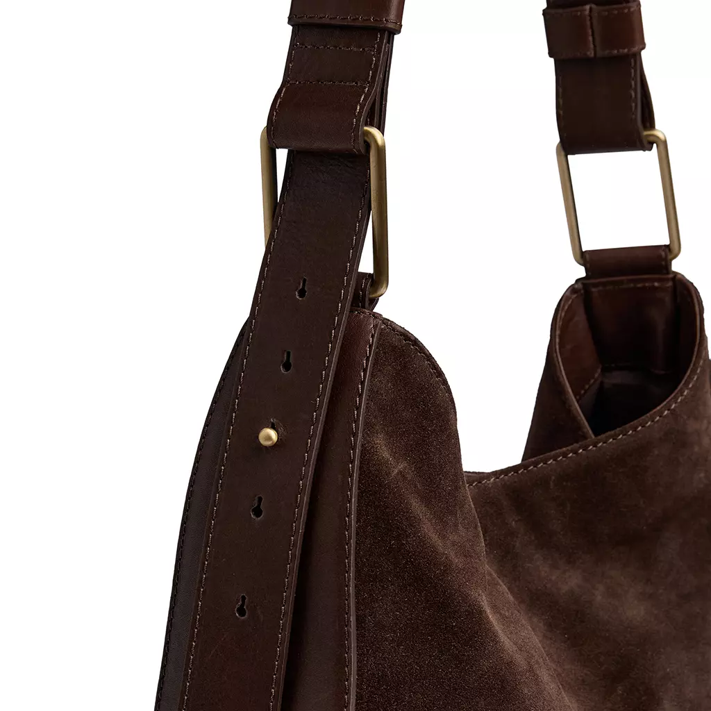 – Semsket skinn i mørk brun